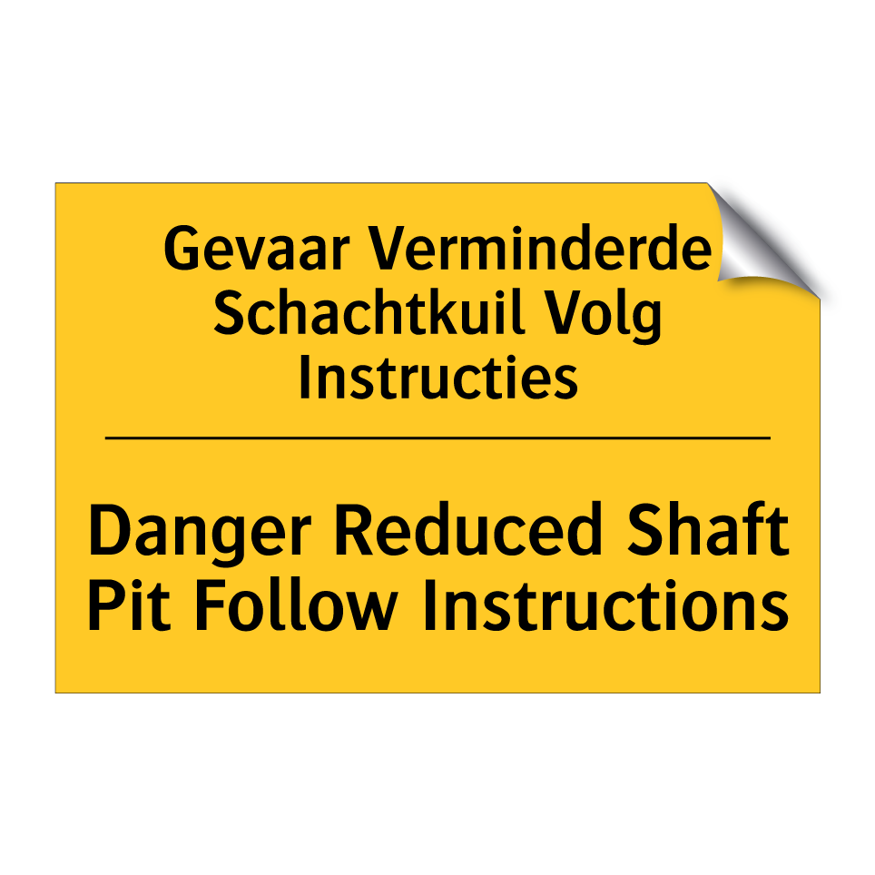 Waarschuwingsbord met de tekst Gevaar Verminderde Schachtkuil Volg Instructies / Danger Reduced Shaft Pit Follow Instructions