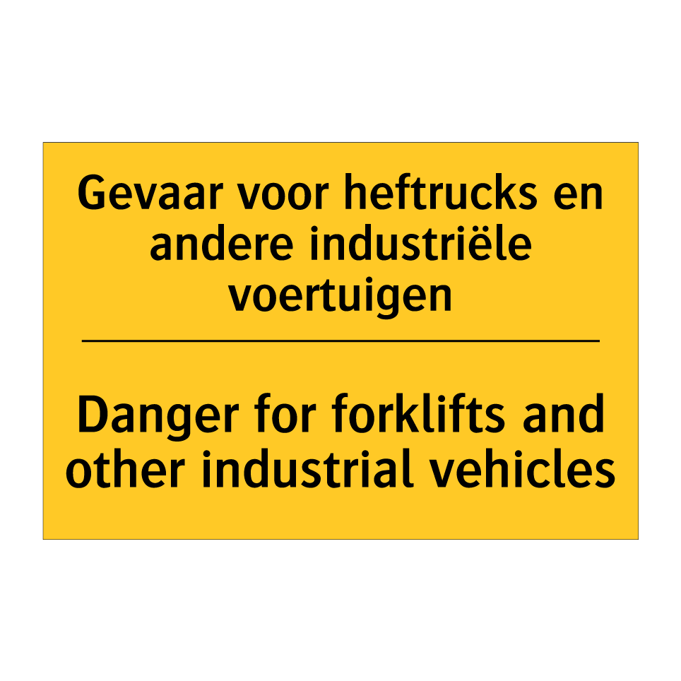 Waarschuwingsbord met de tekst Gevaar voor heftrucks en andere industriële voertuigen / Danger for forklifts and other industrial vehicles