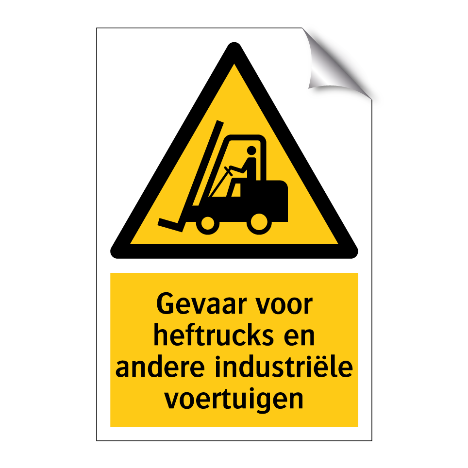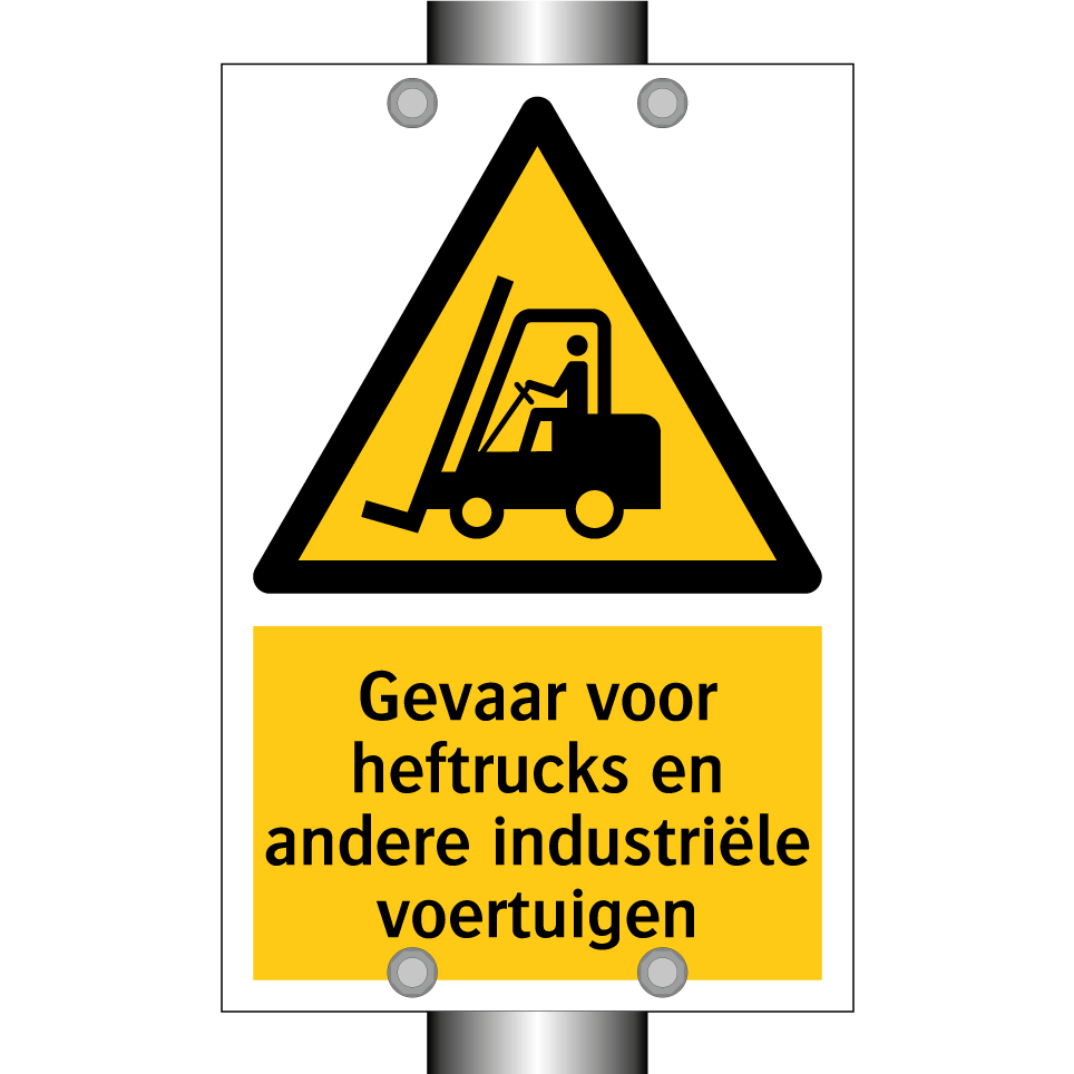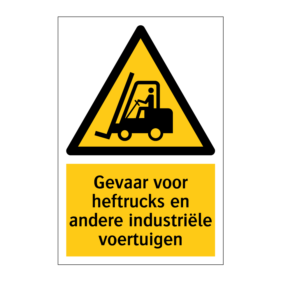 Waarschuwingsbord met de tekst Gevaar voor heftrucks en andere industriële voertuigen