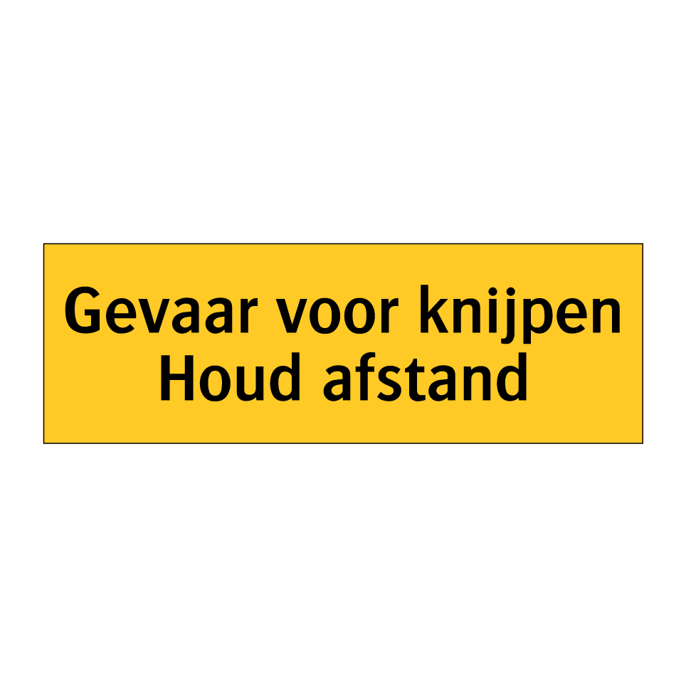 Waarschuwingsbord met de tekst Gevaar voor knijpen Houd afstand