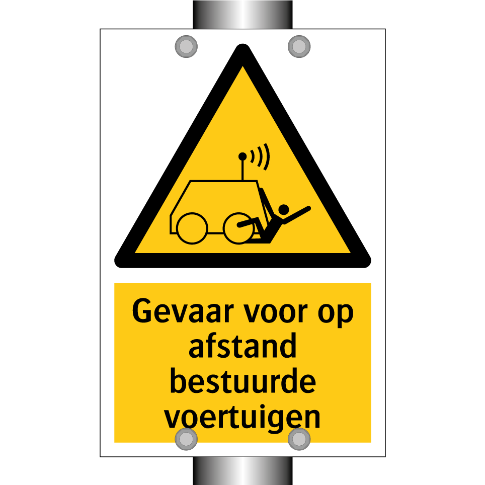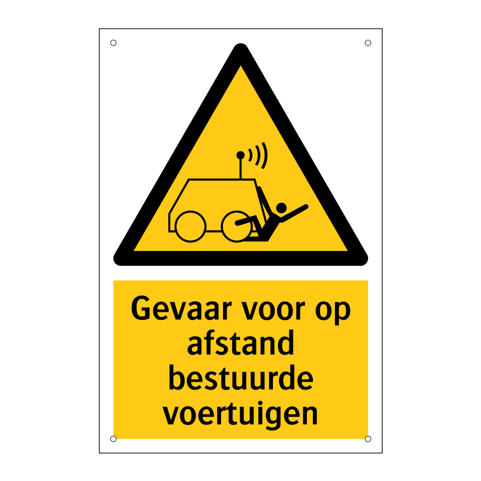Waarschuwingsbord met de tekst Gevaar voor op afstand bestuurde voertuigen