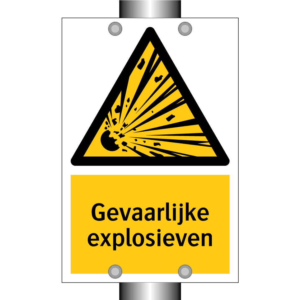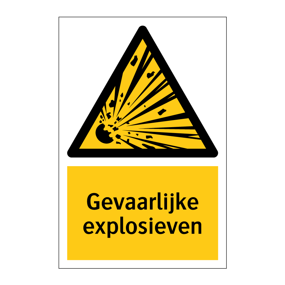 Waarschuwingsbord met de tekst Gevaarlijke explosieven