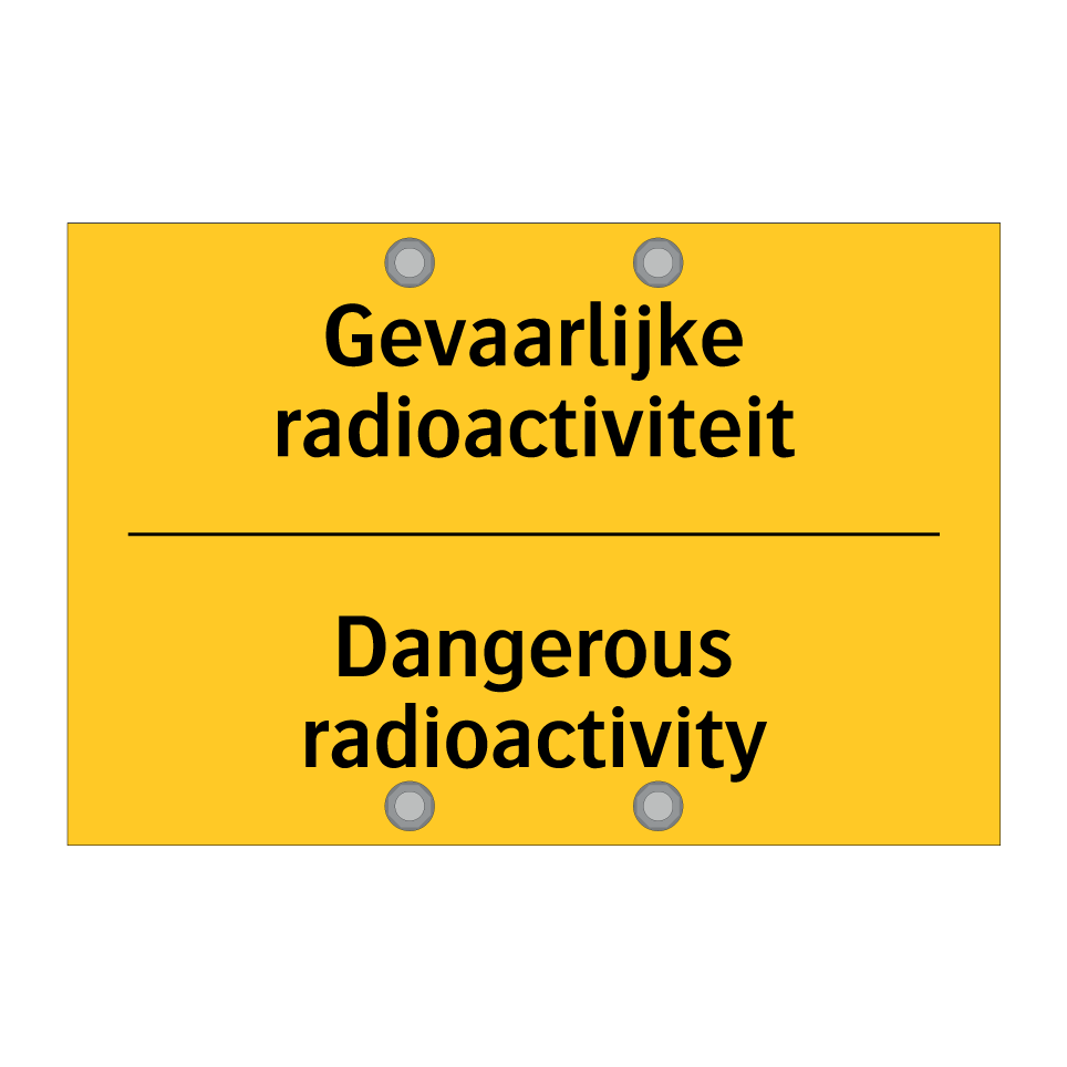Waarschuwingsbord met de tekst Gevaarlijke radioactiviteit / Dangerous radioactivity