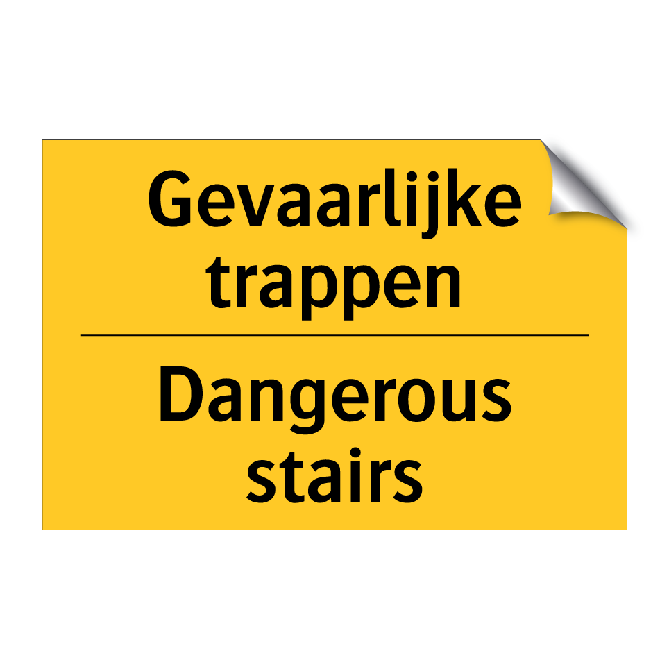 Waarschuwingsbord met de tekst Gevaarlijke trappen / Dangerous stairs