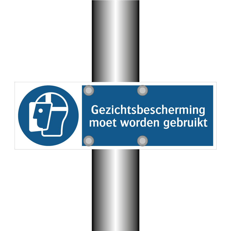Verplichte bord met de tekst Gezichtsbescherming moet worden gebruikt
