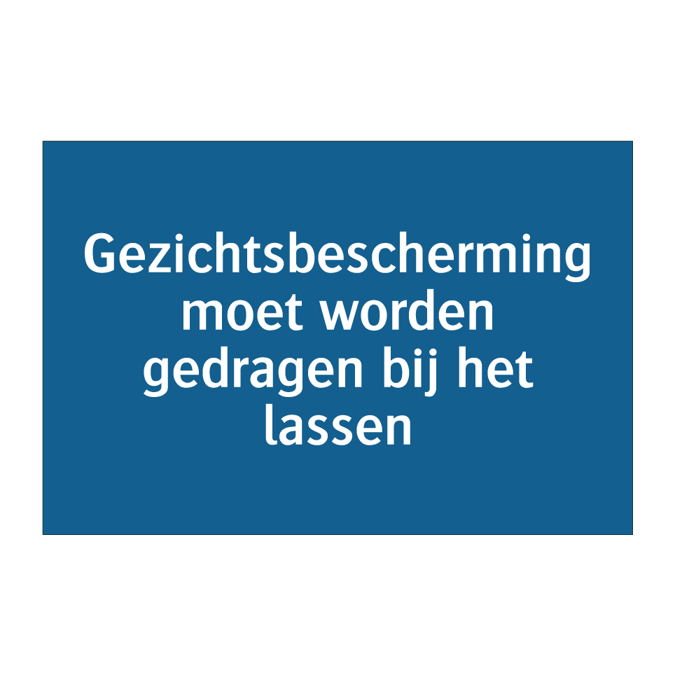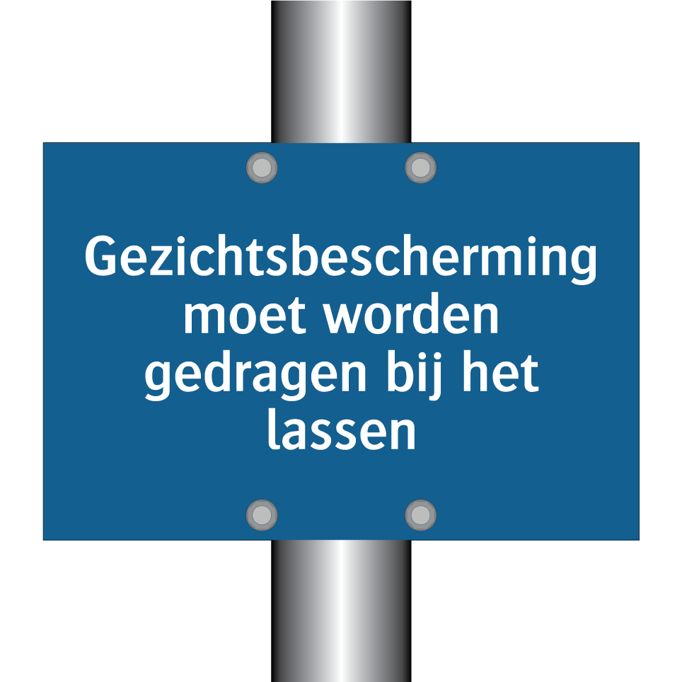 Verplichte bord met de tekst Gezichtsbescherming moet worden gedragen bij het lassen