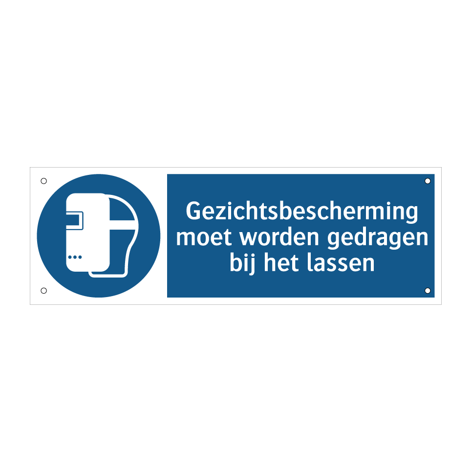 Verplichte bord met de tekst Gezichtsbescherming moet worden gedragen bij het lassen