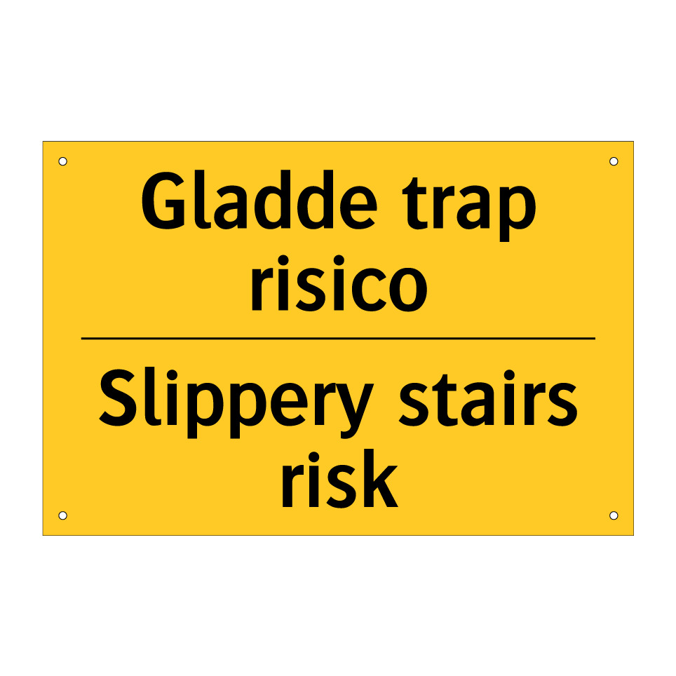 Waarschuwingsbord met de tekst Gladde trap risico / Slippery stairs risk