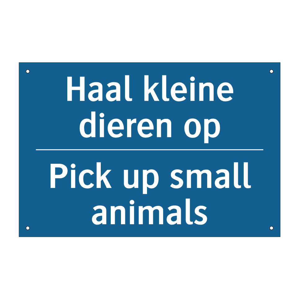 Verplichte bord met de tekst Haal kleine dieren op - Pick up small animals