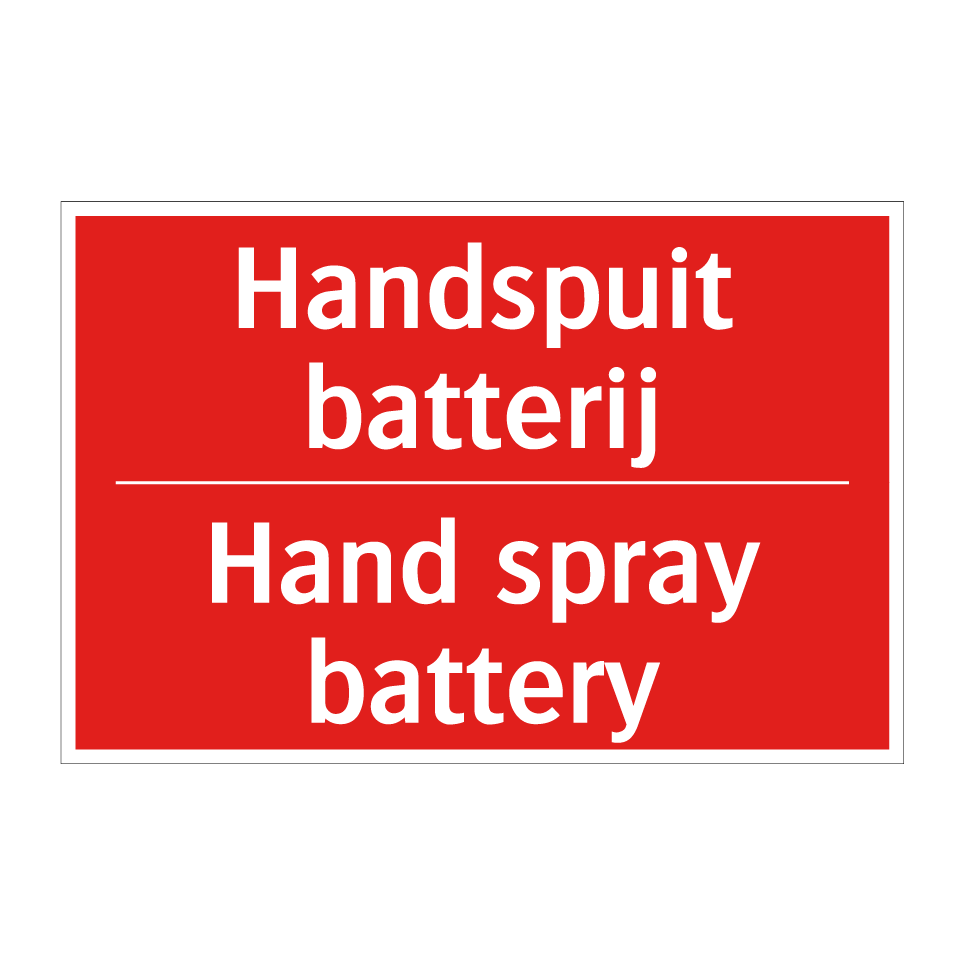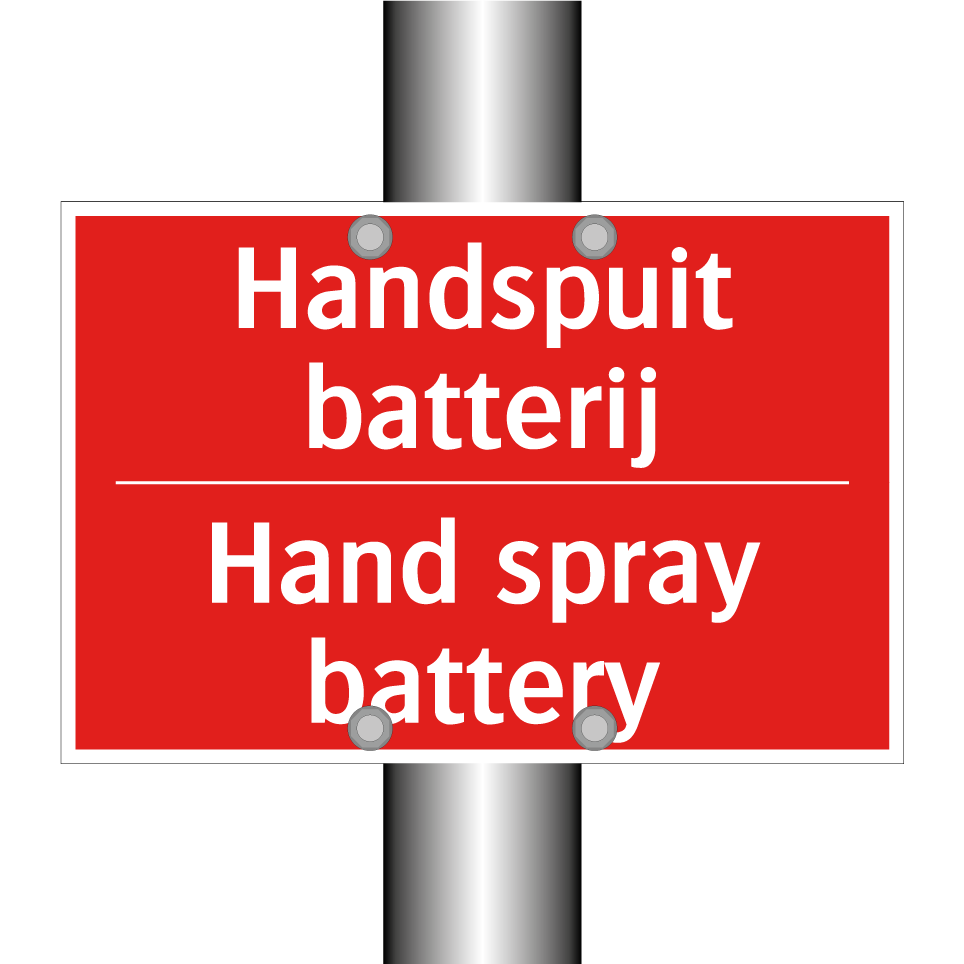 Brandbord met tekst Handspuit batterij - Hand spray battery