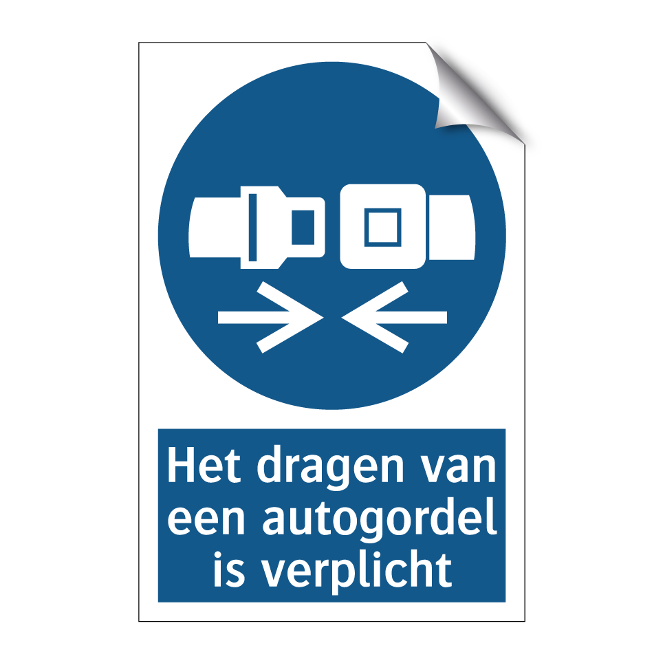 Verplichte bord met de tekst Het dragen van een autogordel is verplicht