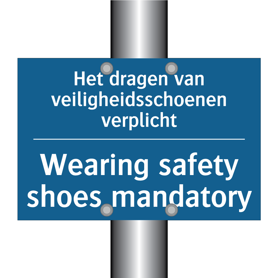Verplichte bord met de tekst Het dragen van veiligheidsschoenen verplicht - Wearing safety shoes mandatory