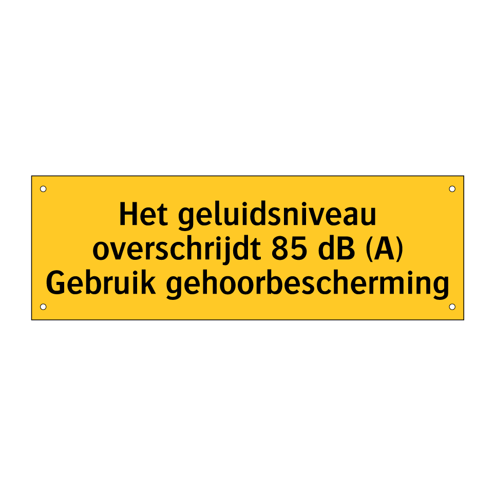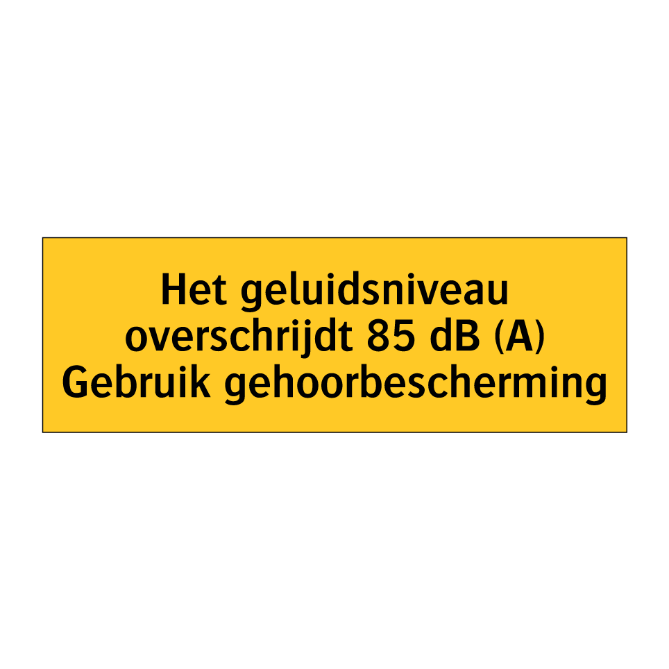 Waarschuwingsbord met de tekst Het geluidsniveau overschrijdt 85 dB (A) Gebruik gehoorbescherming