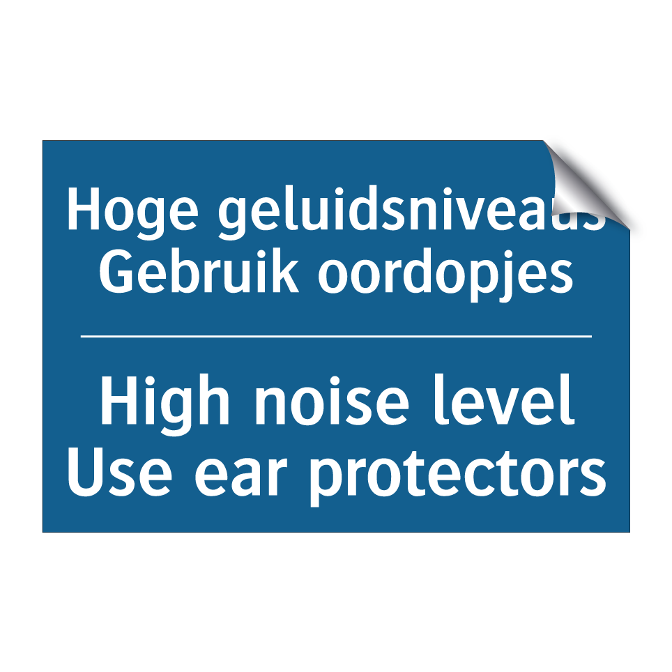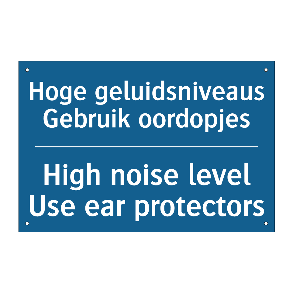 Verplichte bord met de tekst Hoge geluidsniveaus Gebruik oordopjes - High noise level Use ear protectors