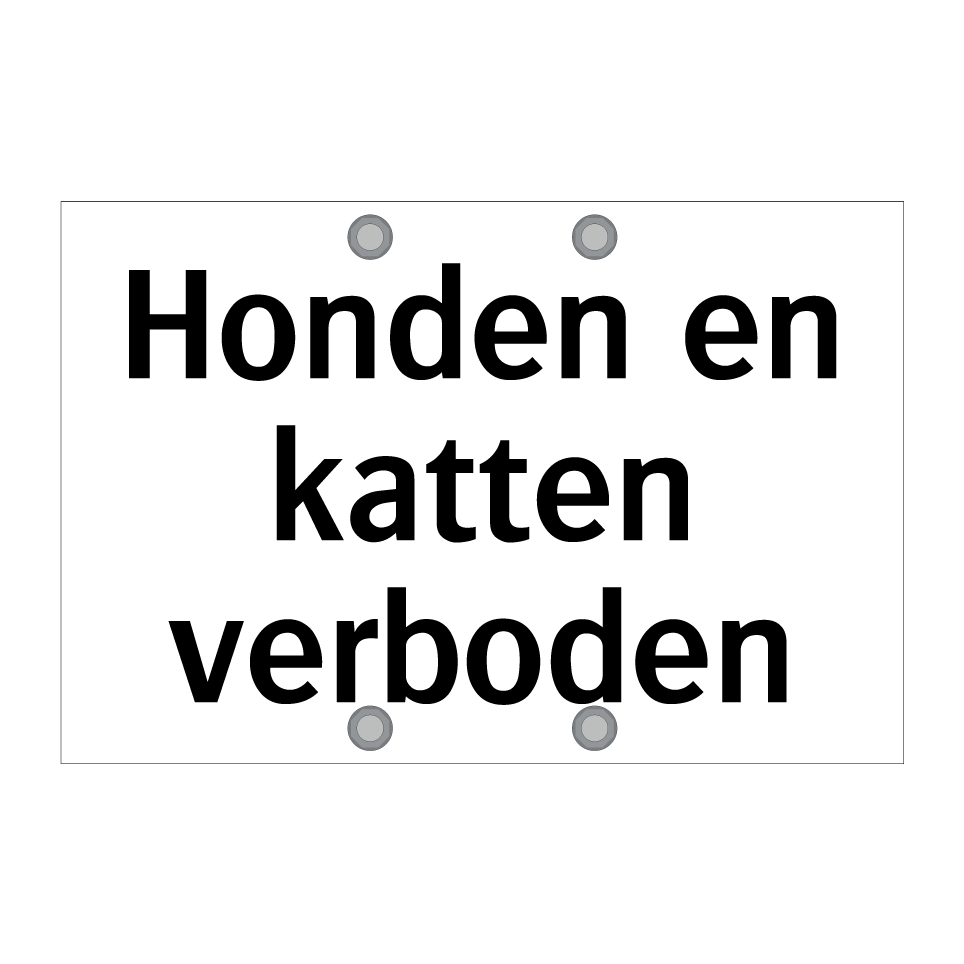 Deze opvallende verbodsbord is ideaal voor het duidelijk aangeven van ongewenste dieren in bepaalde gebieden. Perfect voor gebruik in tuinen, parken, en andere openbare ruimtes waar het belangrijk is om huisdieren zoals honden en katten buiten te houden. Door de duidelijke zwarte tekst op een witte achtergrond is de boodschap niet te missen. Plaats deze bord bij ingangen, hekken of andere strategische locaties om ervoor te zorgen dat bezoekers zich bewust zijn van de regels. Dit bord helpt bij het handhaven van een schone en veilige omgeving door ongewenste dieren buiten te houden.