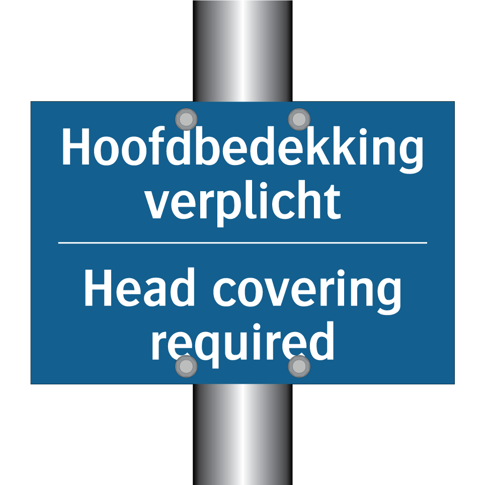 Verplichte bord met de tekst Hoofdbedekking verplicht - Head covering required