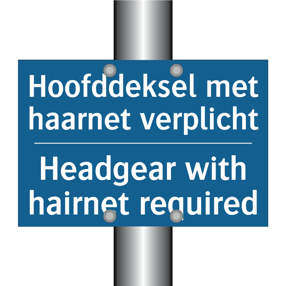 Verplichte bord met de tekst Hoofddeksel met haarnet verplicht - Headgear with hairnet required