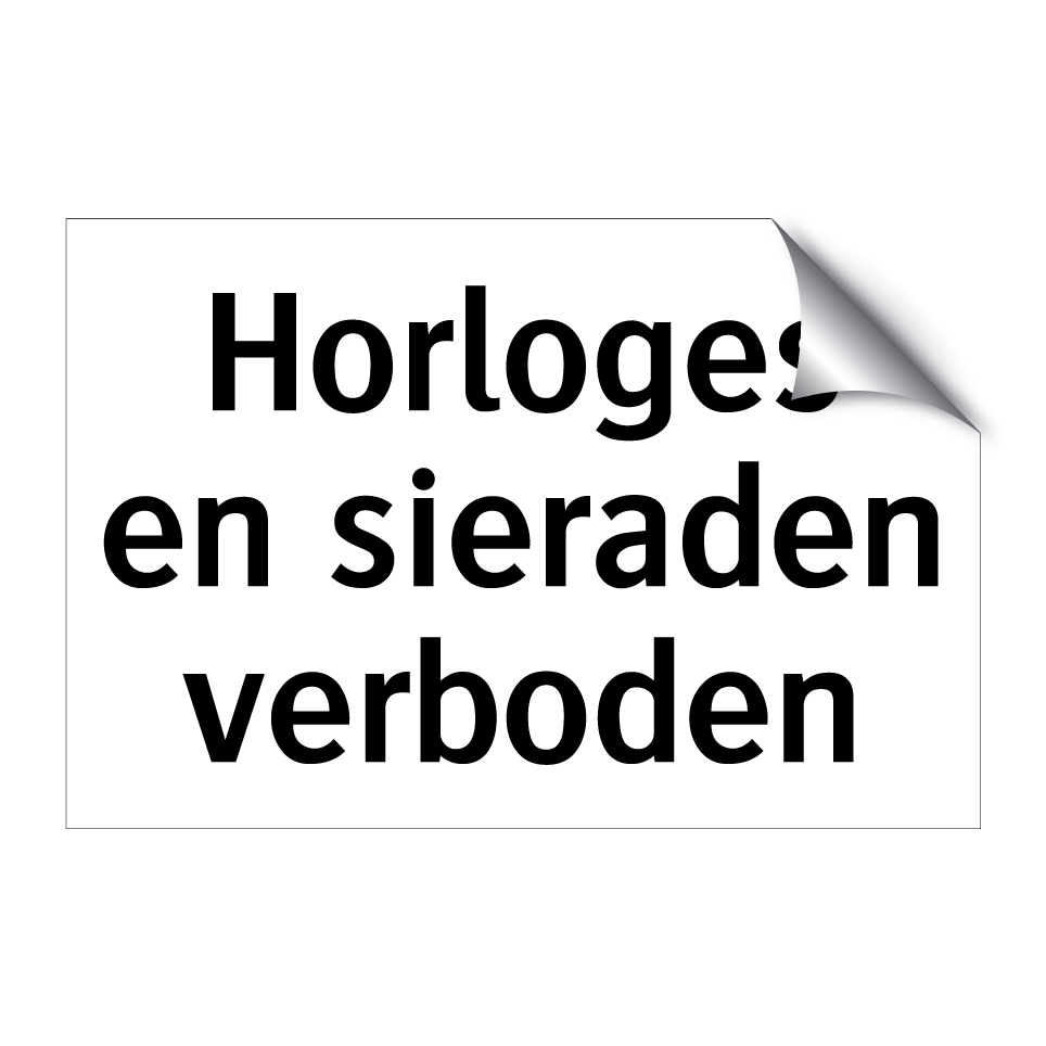 Verbodsbord met de tekst Horloges en sieraden verboden