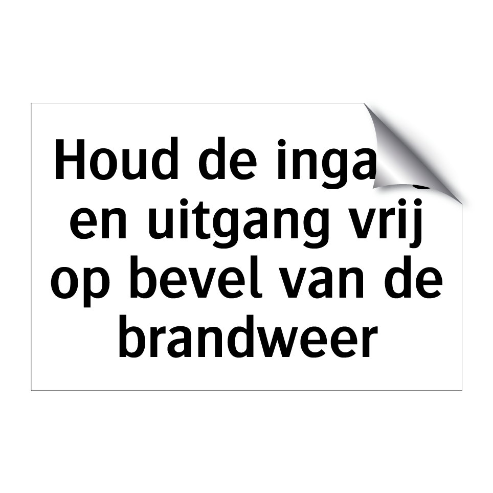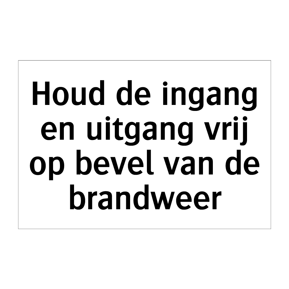 Verbodsbord met de tekst Houd de ingang en uitgang vrij op bevel van de brandweer