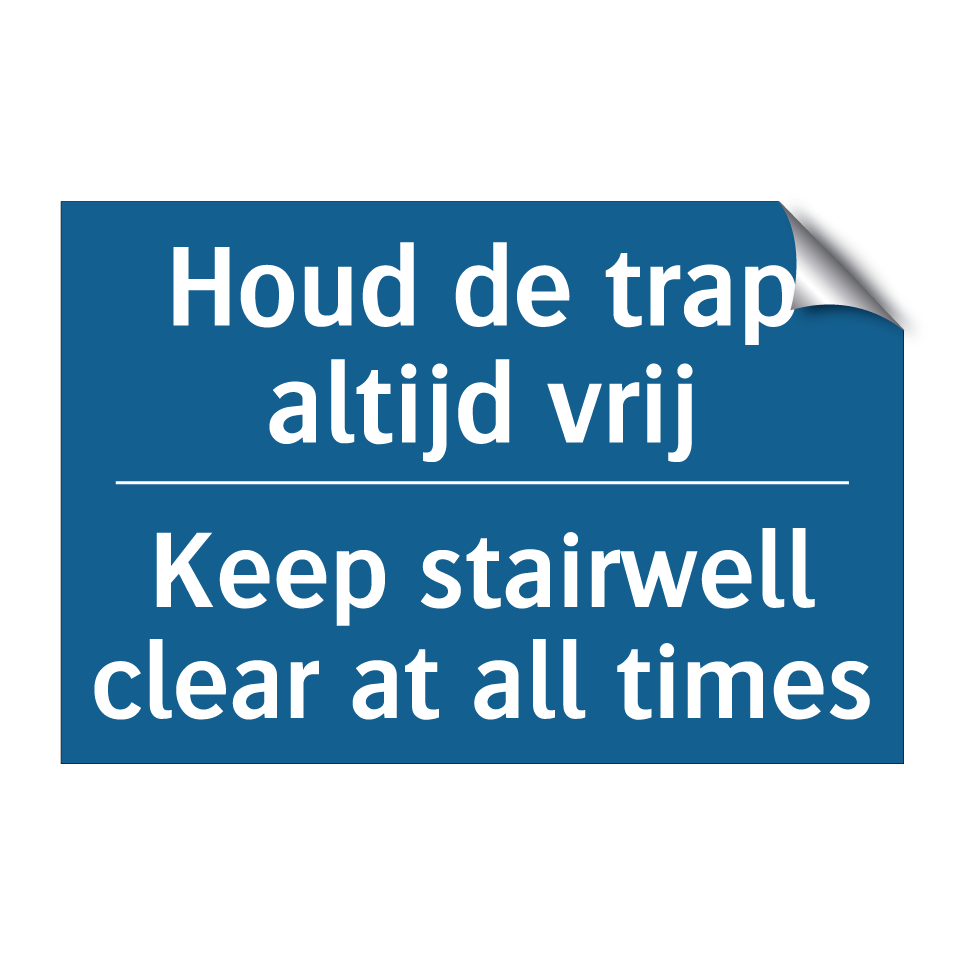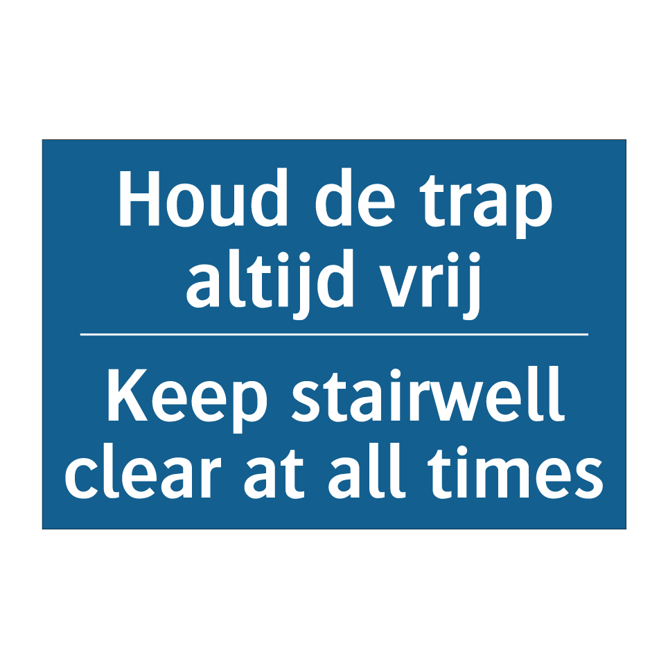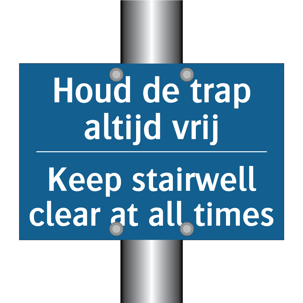 Verplichte bord met de tekst Houd de trap altijd vrij - Keep stairwell clear at all times