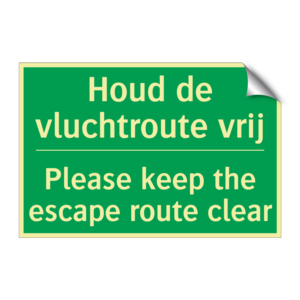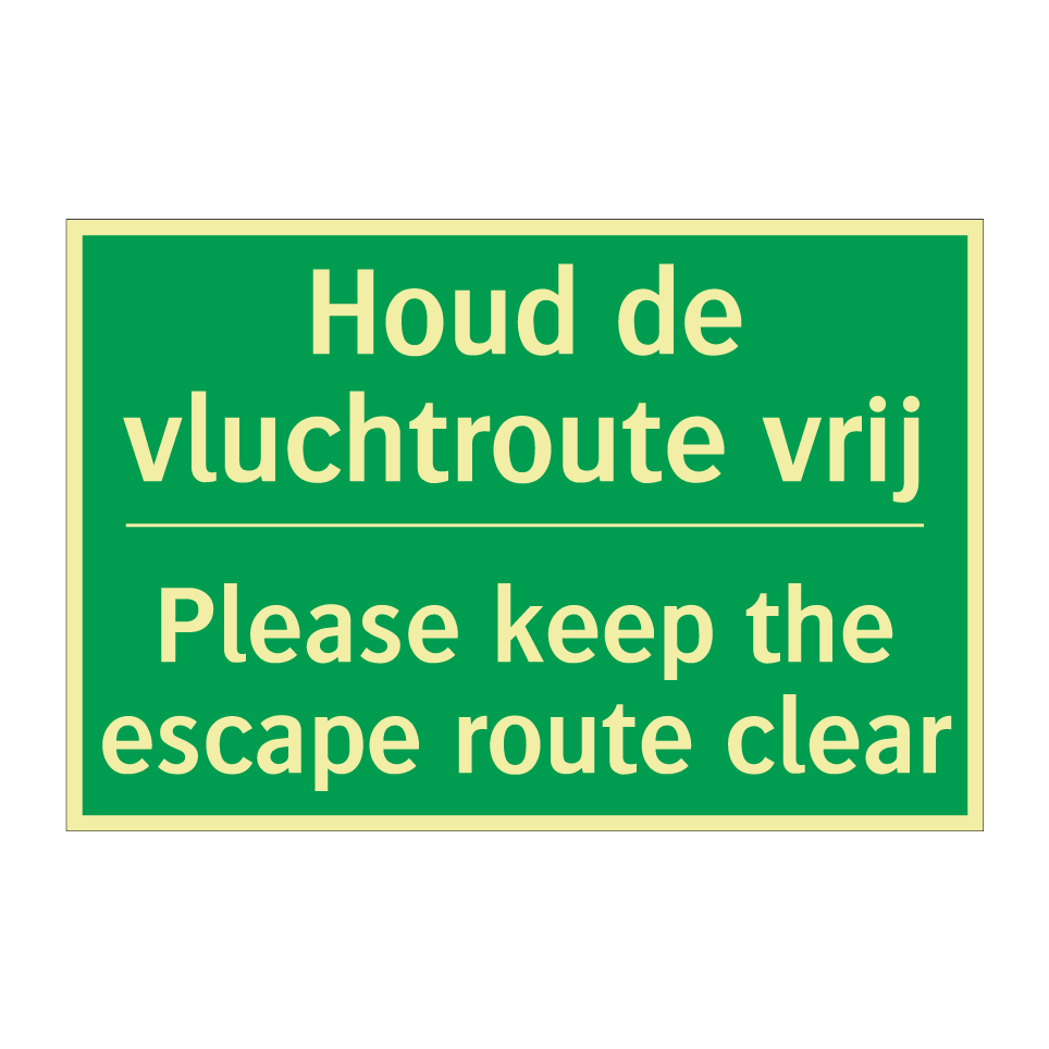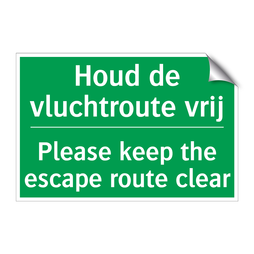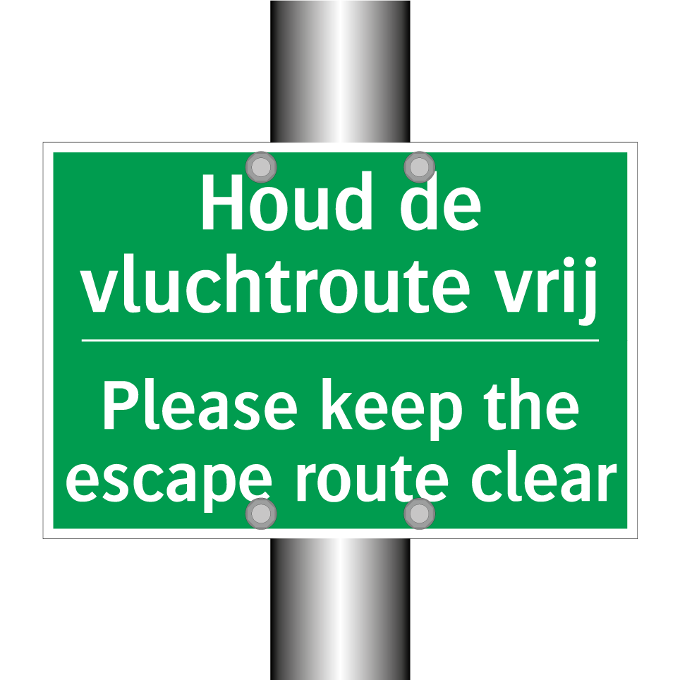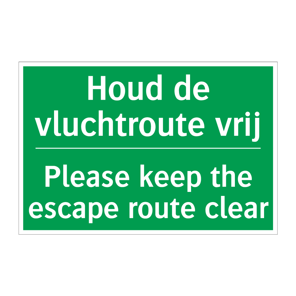 Noodbord met tekst Houd de vluchtroute vrij / Please keep the escape route clear