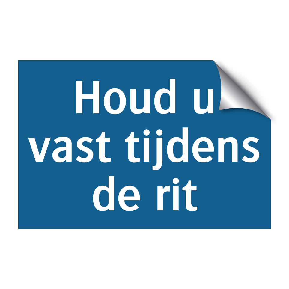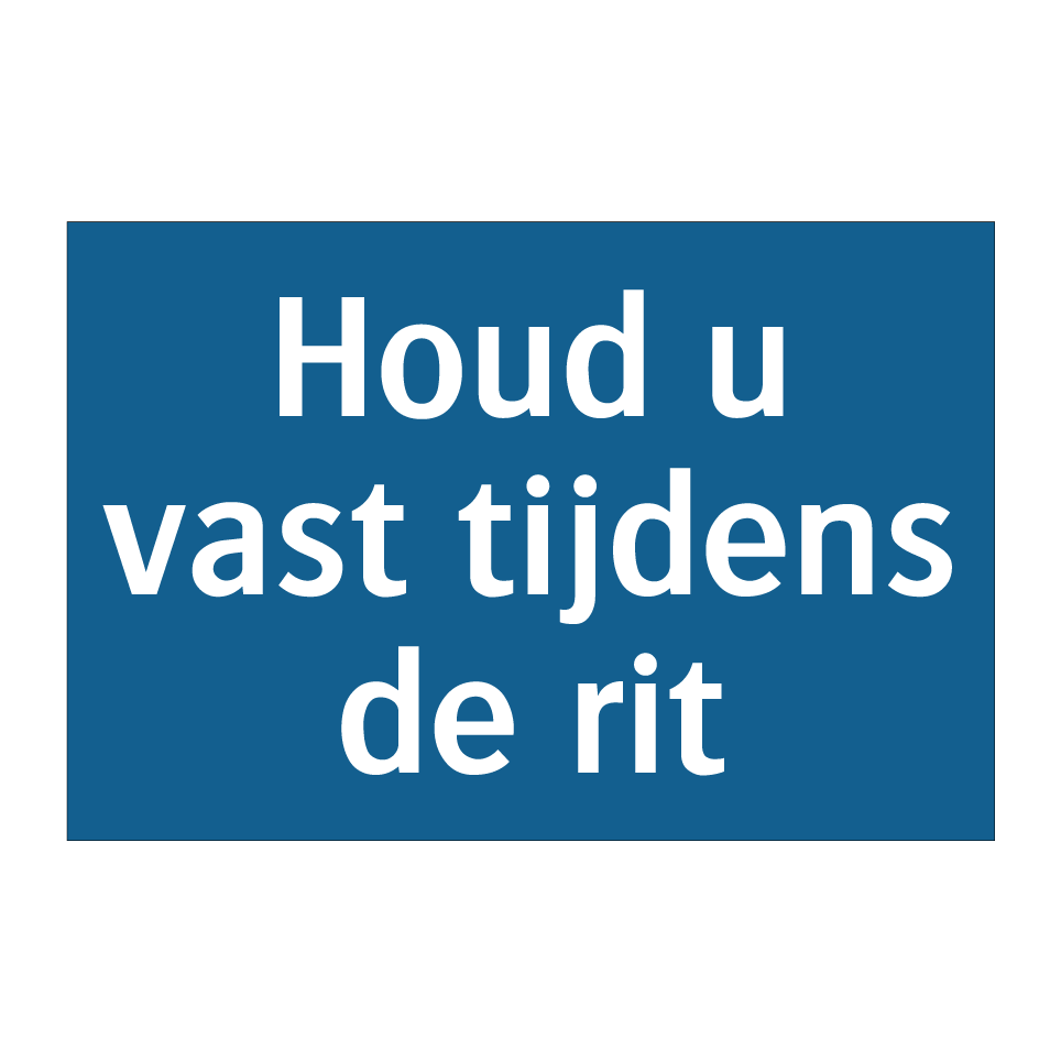 Verplichte bord met de tekst Houd u vast tijdens de rit