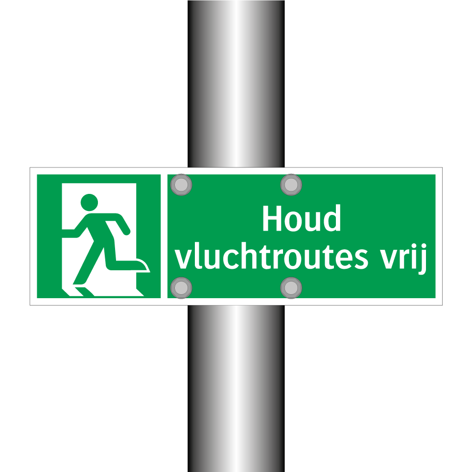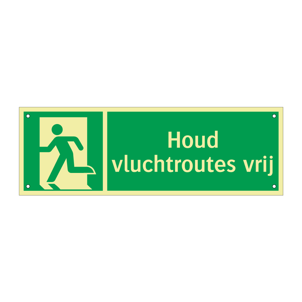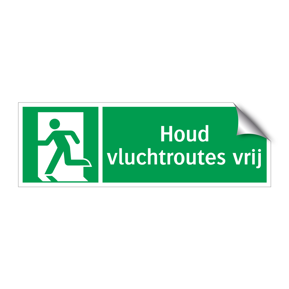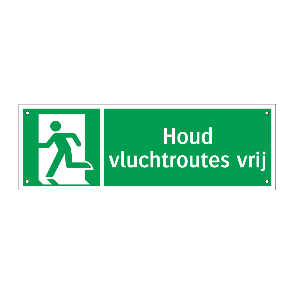 Noodbord met tekst Houd vluchtroutes vrij