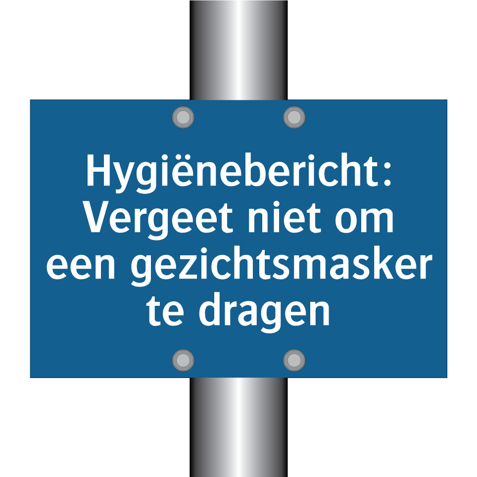 Deze verplichte bord met blauwe achtergrond en witte tekst is ideaal voor gebruik in omgevingen waar hygiëne van het grootste belang is. Plaats deze bord bij ingangen van ziekenhuizen, klinieken, tandartspraktijken, en andere zorginstellingen om bezoekers eraan te herinneren een gezichtsmasker te dragen. Ook geschikt voor kantoren, winkels, en openbare gebouwen om de gezondheid en veiligheid van iedereen te waarborgen. Door deze duidelijke en opvallende bord te plaatsen, zorgt u ervoor dat iedereen zich bewust is van de hygiëneregels en helpt u de verspreiding van ziekten te voorkomen.