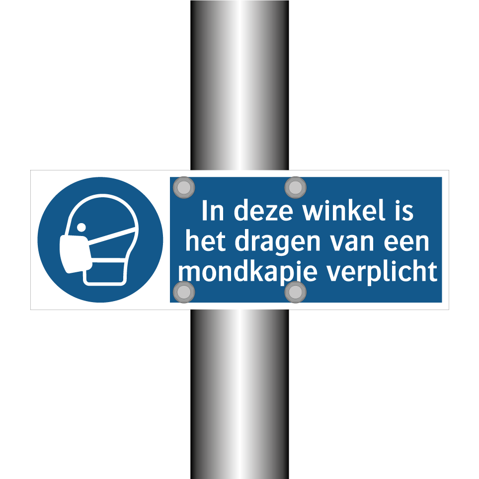 Verplichte bord met de tekst In deze winkel is het dragen van een mondkapje verplicht