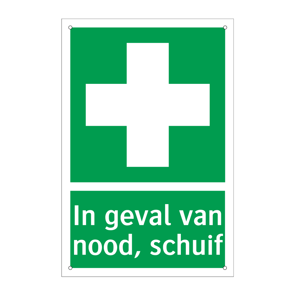 Deze noodbord is essentieel voor elke ruimte waar veiligheid prioriteit is. Het bord is ontworpen om in geval van nood snel en duidelijk instructies te geven. Plaats dit noodbord op goed zichtbare locaties zoals gangen, trappenhuizen, bij nooduitgangen en in openbare ruimtes. Het groene bord met witte tekst en een duidelijke symbool zorgt ervoor dat iedereen direct weet wat te doen in een noodsituatie. Ideaal voor kantoren, scholen, ziekenhuizen en andere openbare gebouwen. Zorg ervoor dat uw omgeving voorbereid is op noodsituaties met dit onmisbare noodbord.