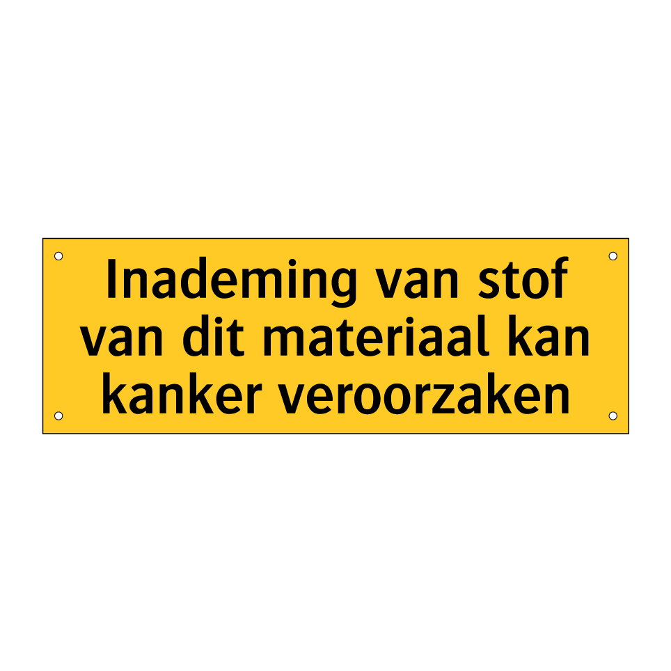 Waarschuwingsbord met de tekst Inademing van stof van dit materiaal kan kanker veroorzaken