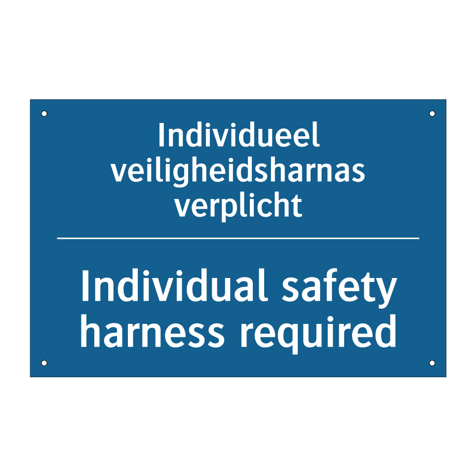 Verplichte bord met de tekst Individueel veiligheidsharnas verplicht - Individual safety harness required