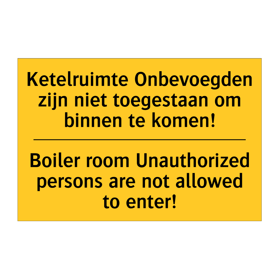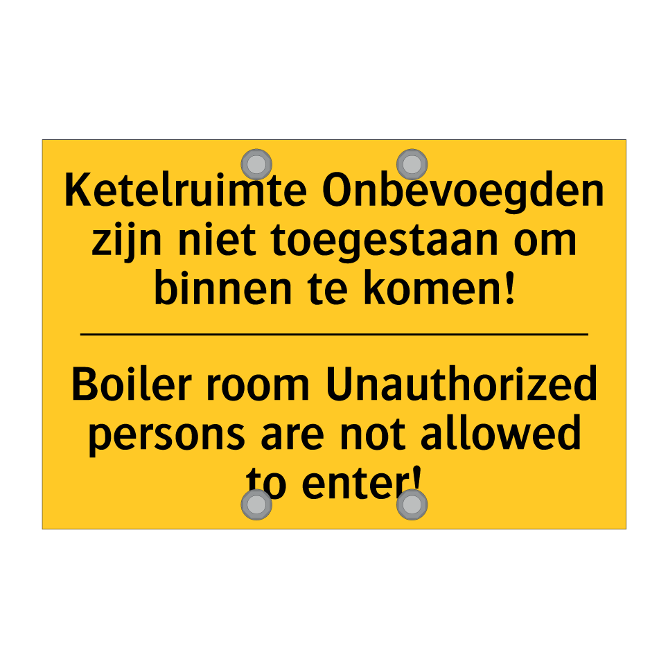 Waarschuwingsbord met de tekst Ketelruimte Onbevoegden zijn niet toegestaan om binnen te komen! / Boiler room Unauthorized persons are not allowed to enter!