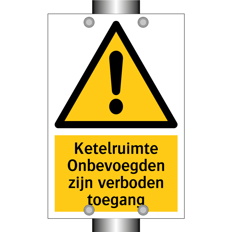 Waarschuwingsbord met de tekst Ketelruimte Onbevoegden zijn verboden toegang