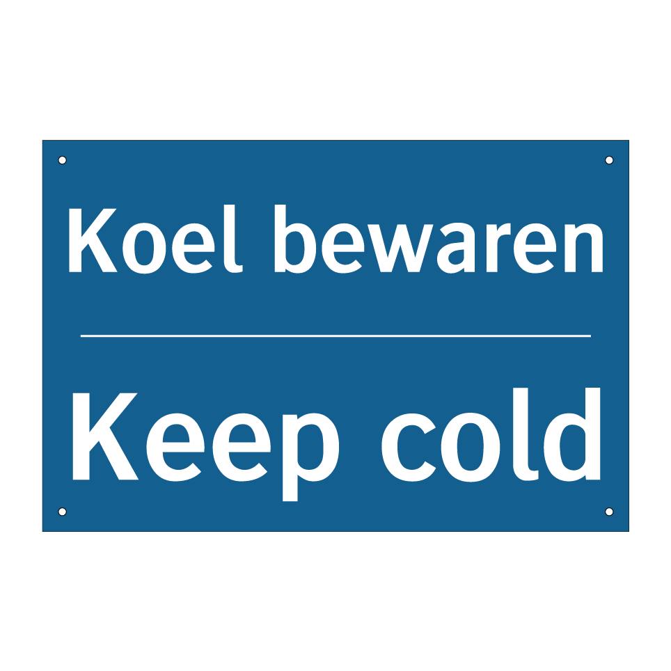 Verplichte bord met de tekst Koel bewaren - Keep cold