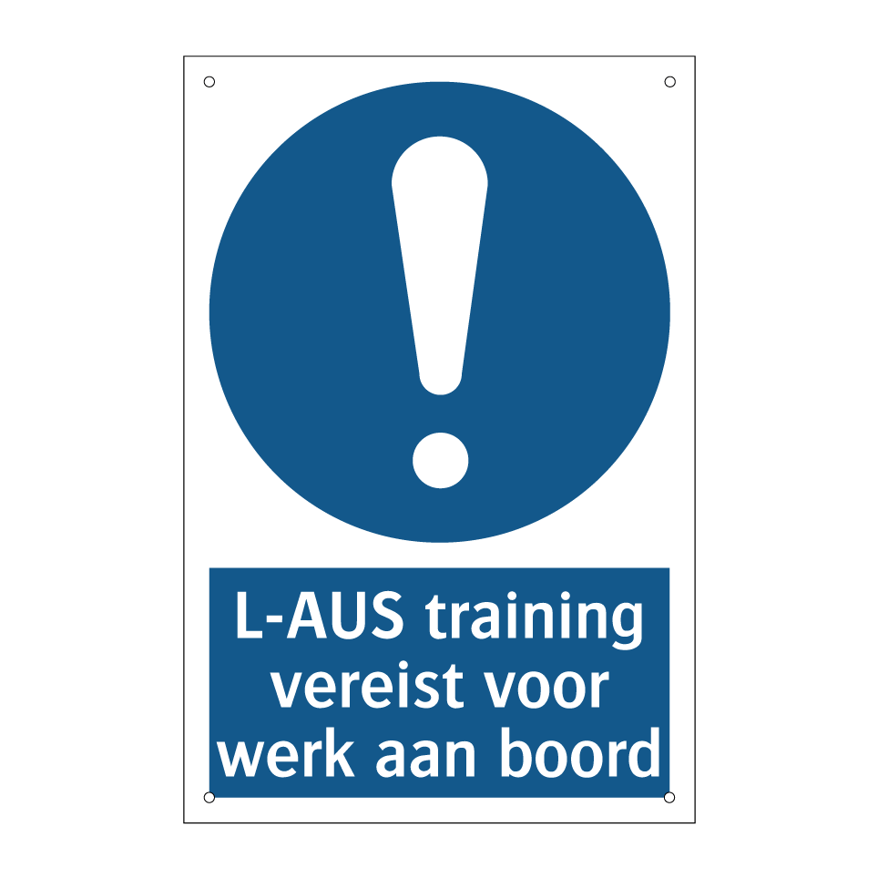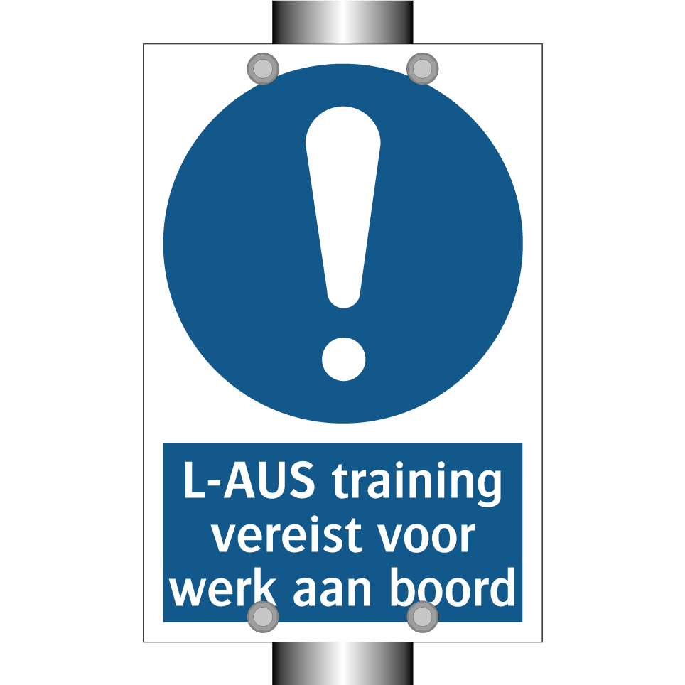 Verplichte bord met de tekst L-AUS training vereist voor werk aan boord