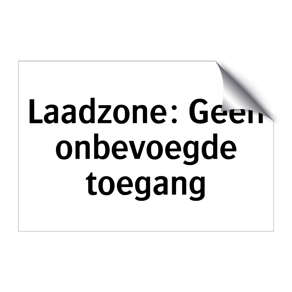 Verbodsbord met de tekst Laadzone: Geen onbevoegde toegang