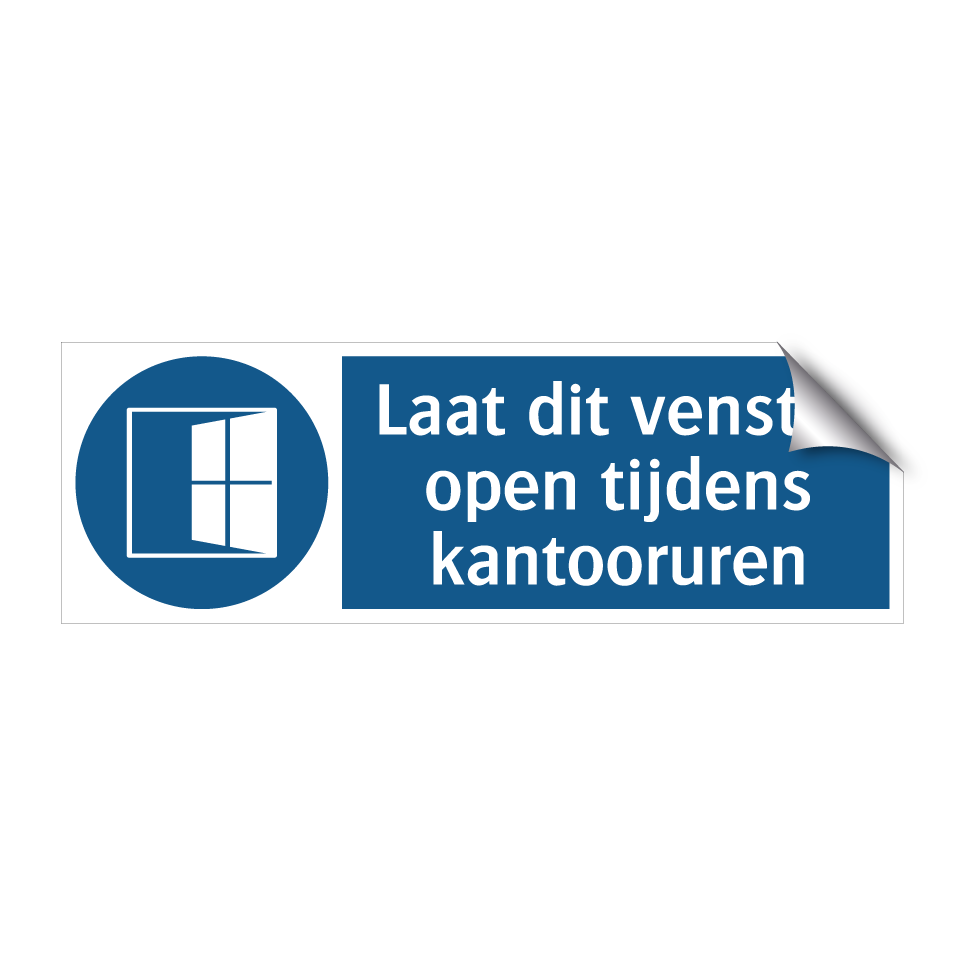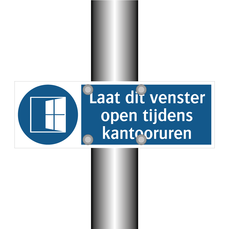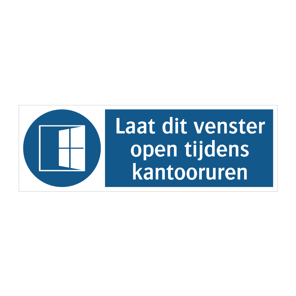 Verplichte bord met de tekst Laat dit venster open tijdens kantooruren