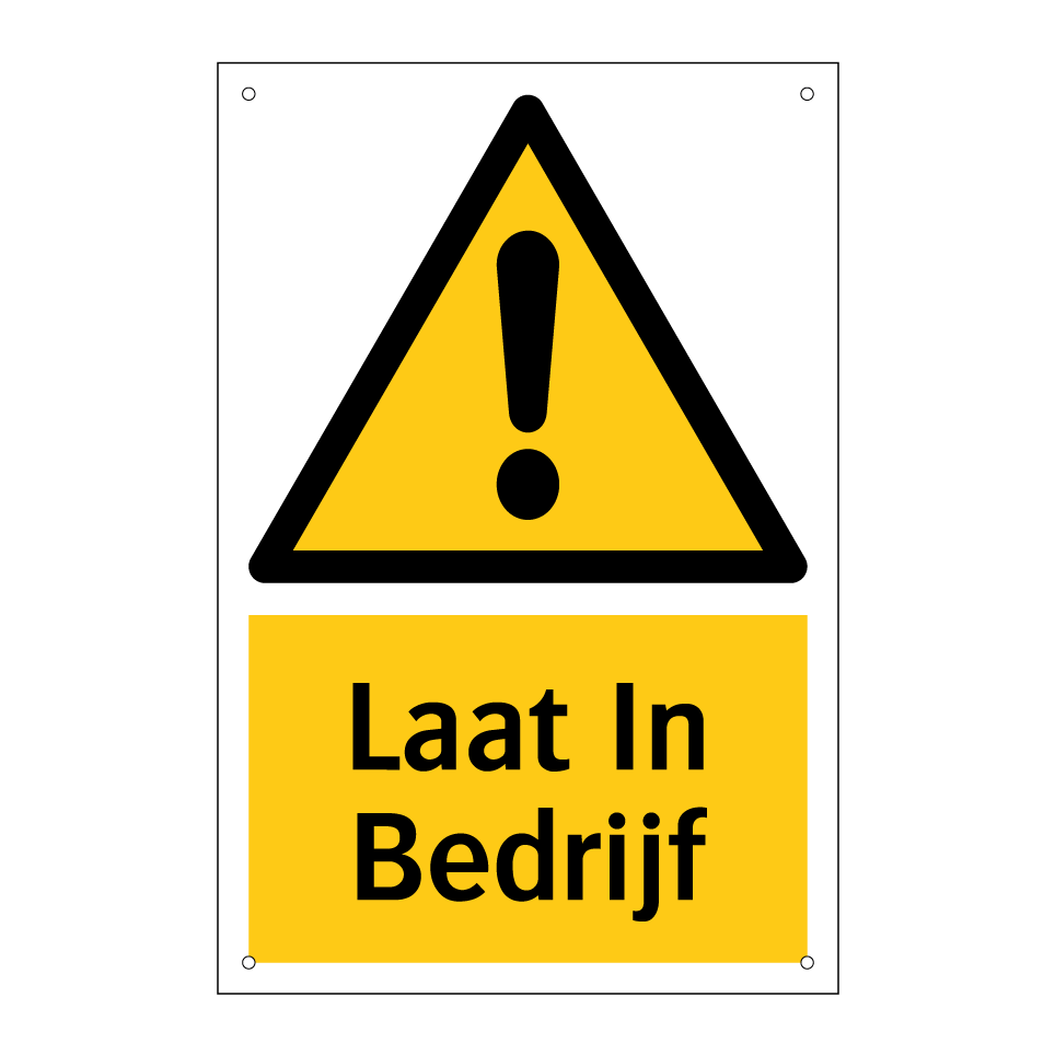 Waarschuwingsbord met de tekst Laat In Bedrijf