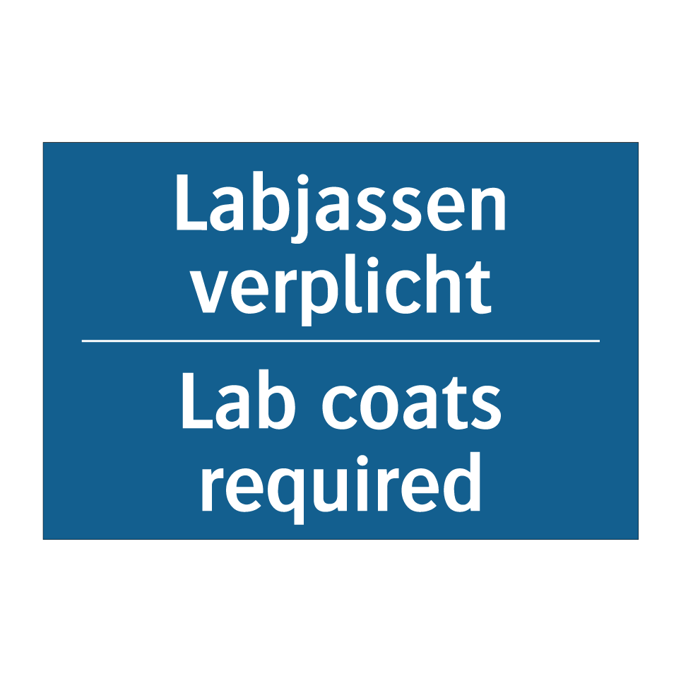 Verplichte bord met de tekst Labjassen verplicht - Lab coats required