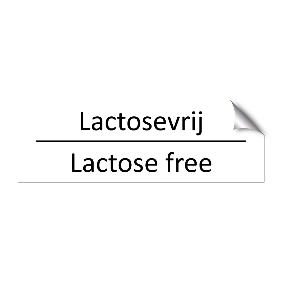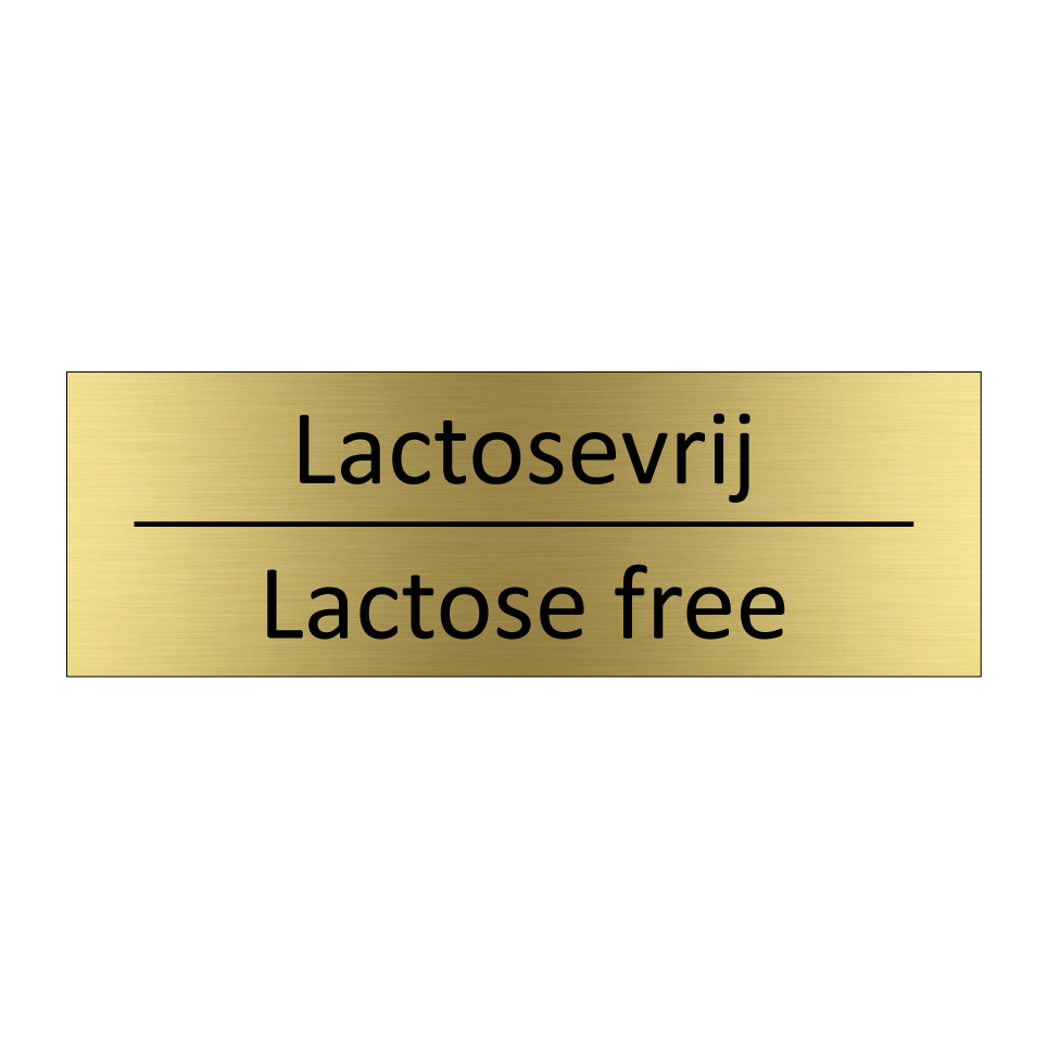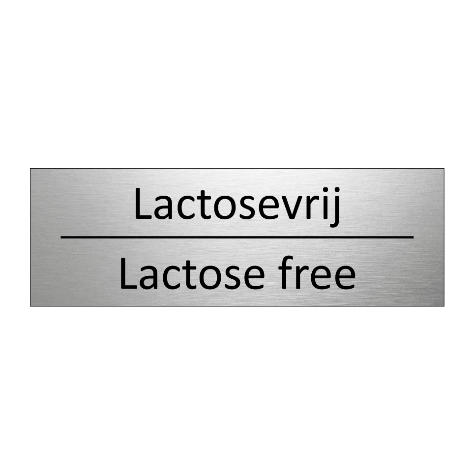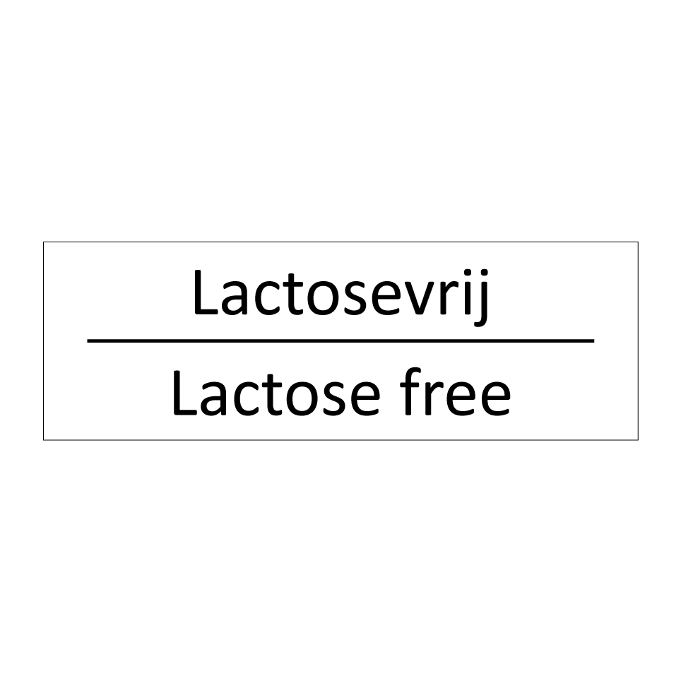 Informatiebord met tekst in het nederlands en engels. Dit bord luidt: Lactosevrij evenals met de engelse vertaling Lactose free.