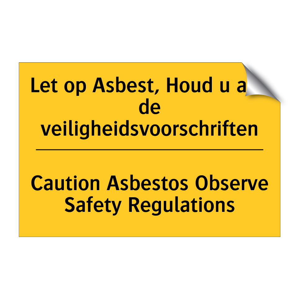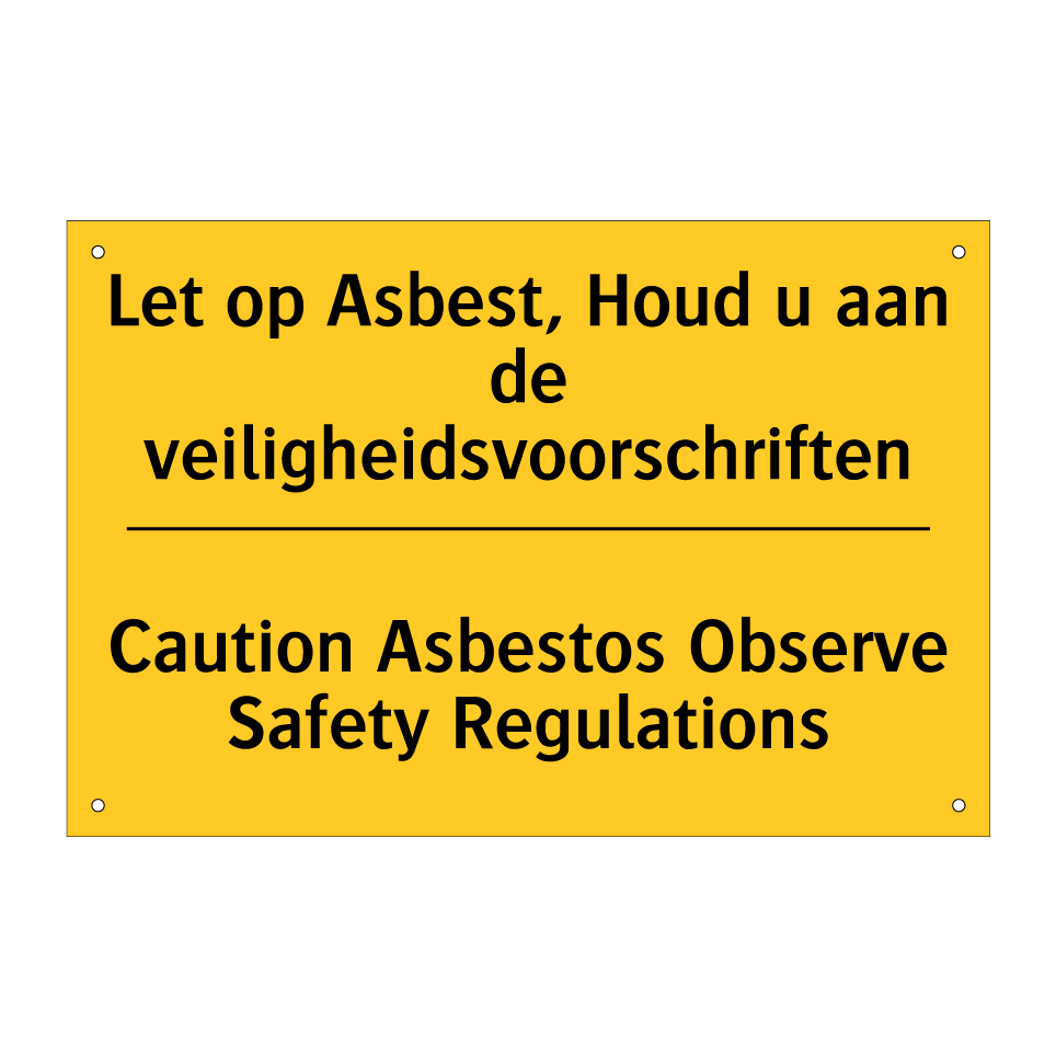 Waarschuwingsbord met de tekst Let op Asbest, Houd u aan de veiligheidsvoorschriften / Caution Asbestos Observe Safety Regulations
