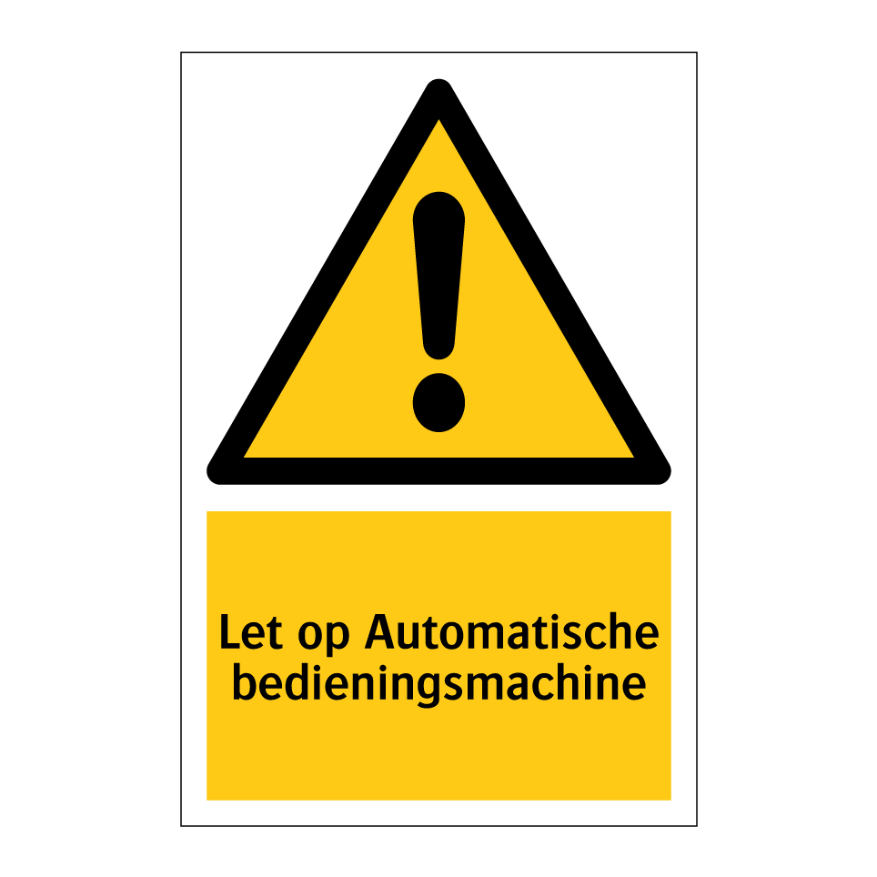 Waarschuwingsbord met de tekst Let op Automatische bedieningsmachine