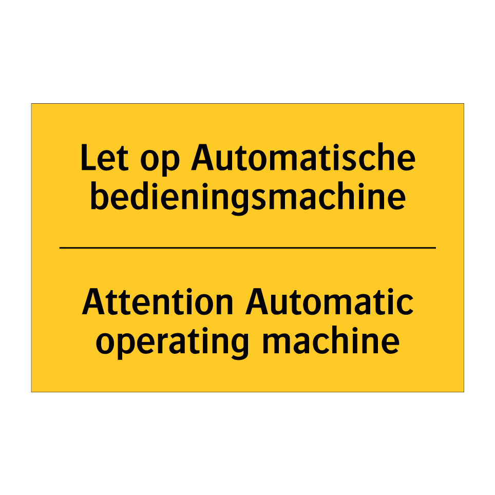 Waarschuwingsbord met de tekst Let op Automatische bedieningsmachine / Attention Automatic operating machine