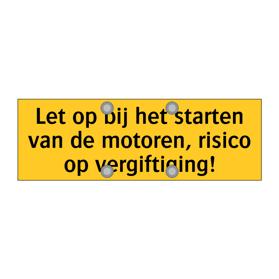 Waarschuwingsbord met de tekst Let op bij het starten van de motoren, risico op vergiftiging!
