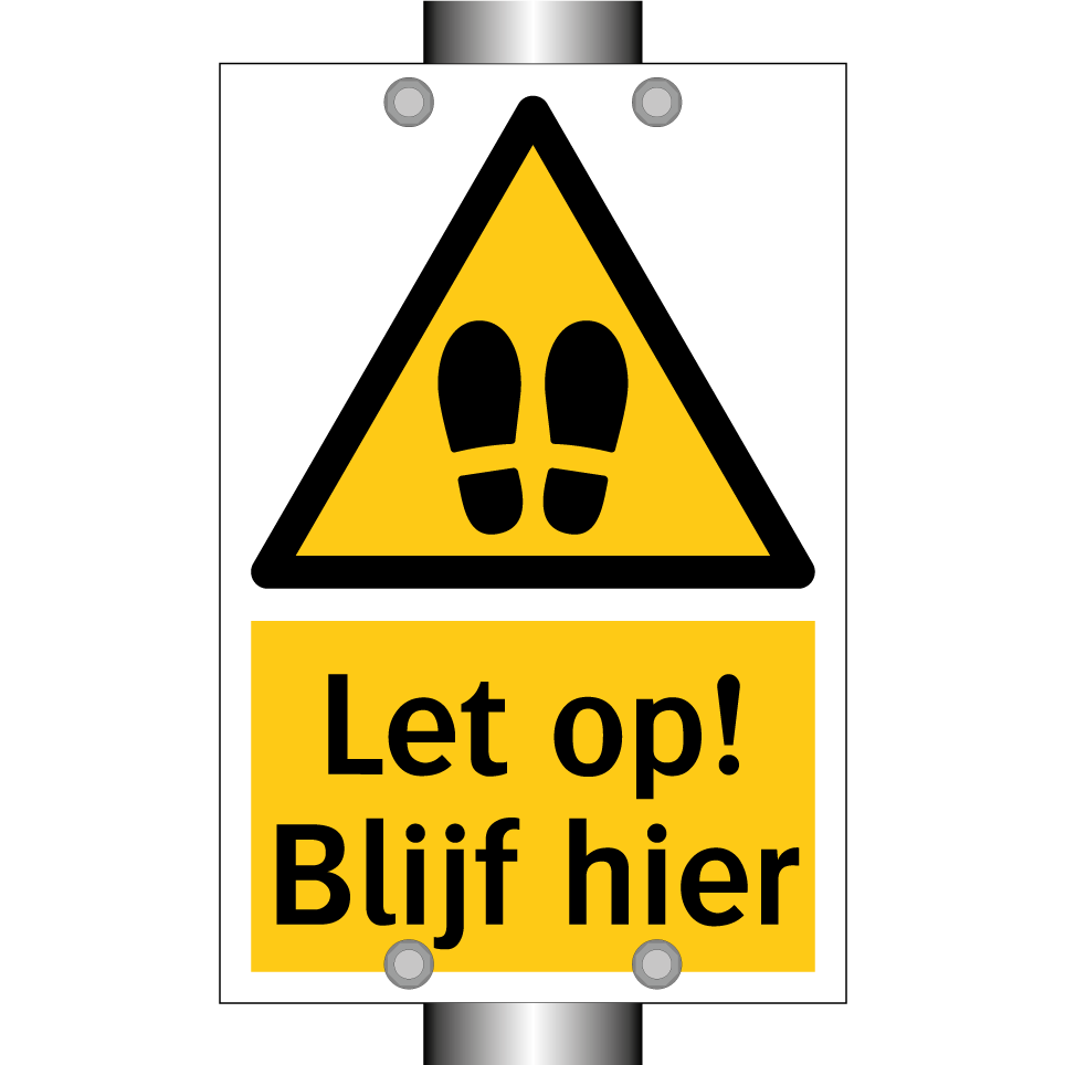 Waarschuwingsbord met de tekst Let op! Blijf hier