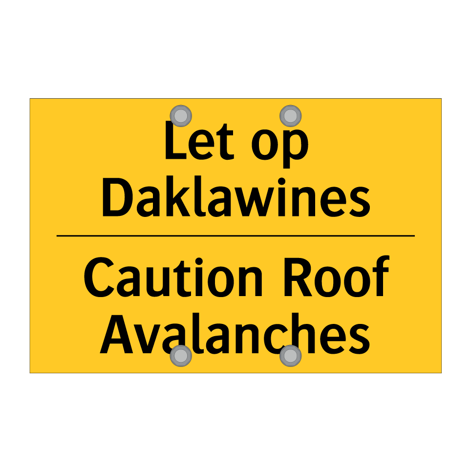 Waarschuwingsbord met de tekst Let op Daklawines / Caution Roof Avalanches