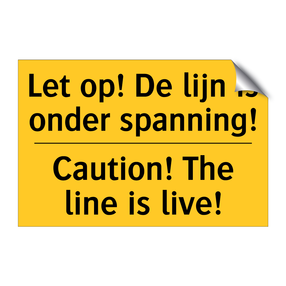 Waarschuwingsbord met de tekst Let op! De lijn is onder spanning! / Caution! The line is live!