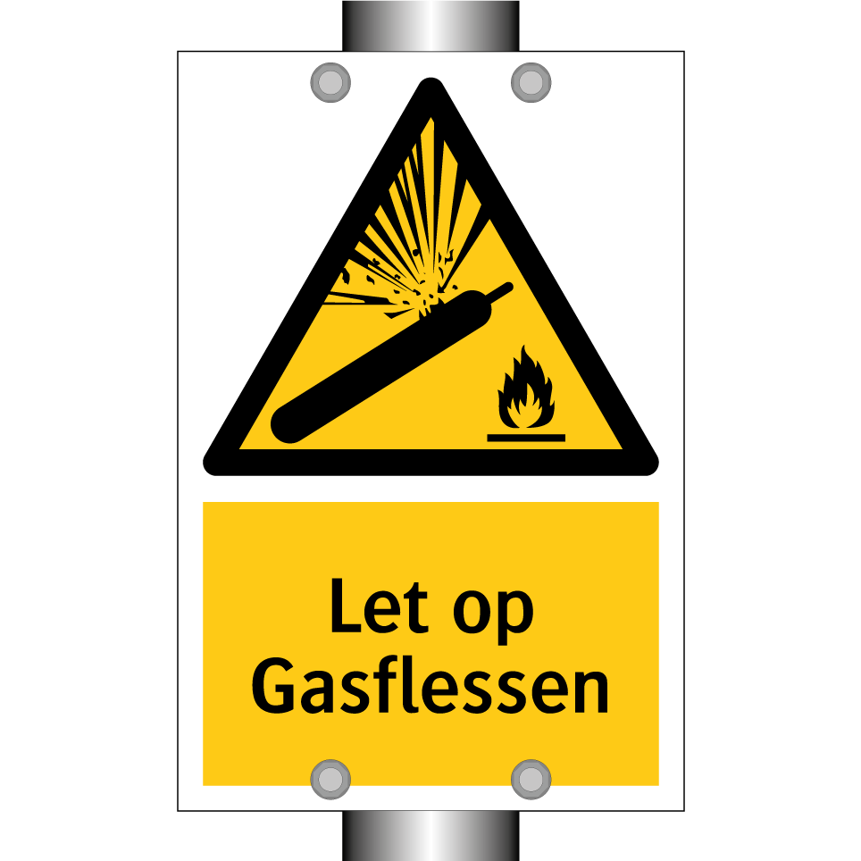 Waarschuwingsbord met de tekst Let op Gasflessen