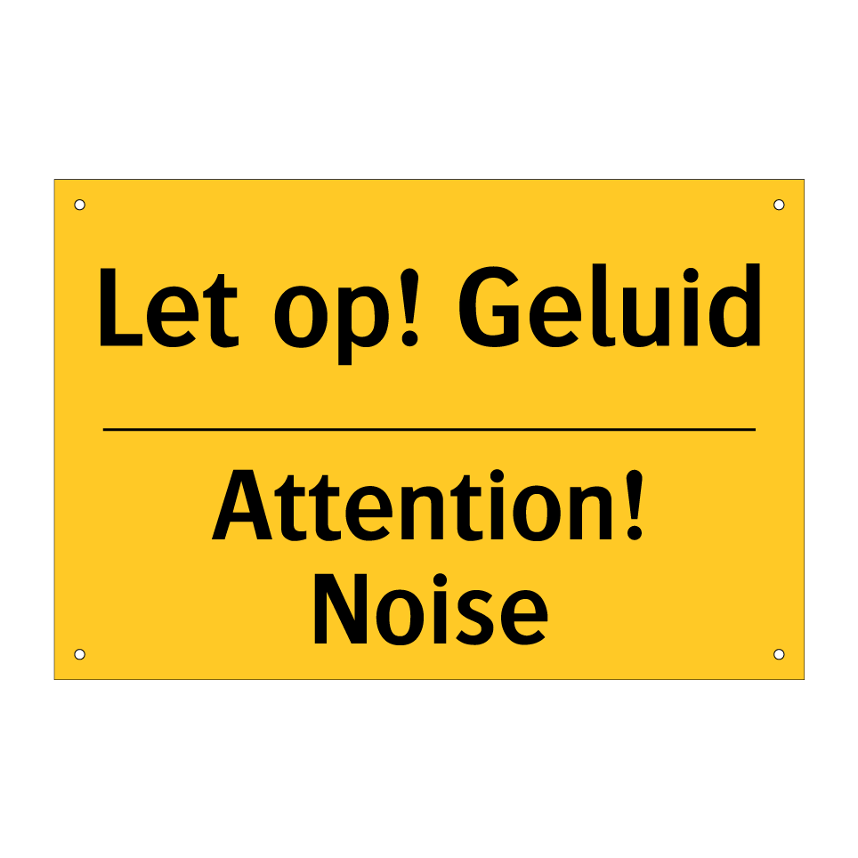 Waarschuwingsbord met de tekst Let op! Geluid / Attention! Noise